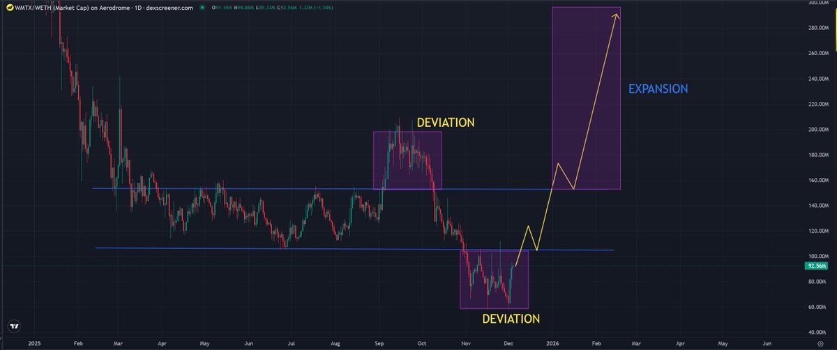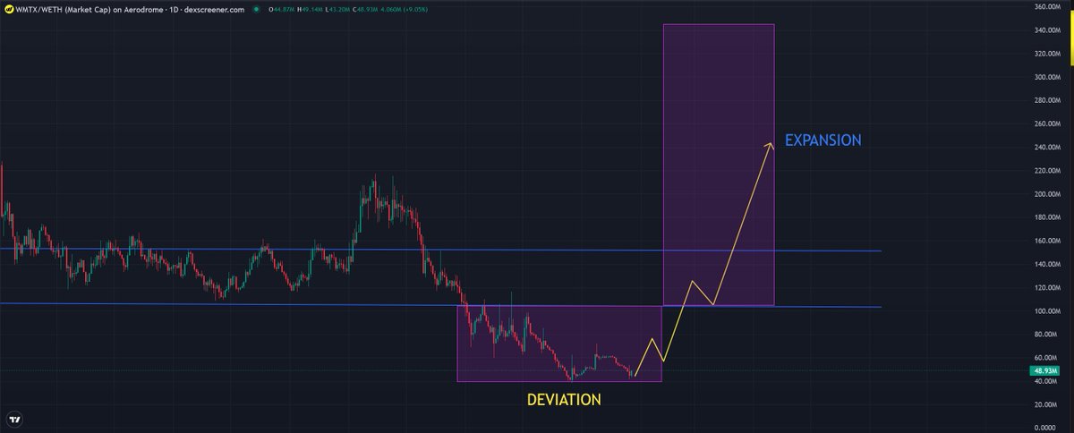 With $WMTx looking to reverse its whole post @coinbase dump, a deviation may be on the cards Weekly closes above 110m confirms this Expecting massive expansion if this is the case, accumulation usually always precedes a massive expansion @WorldMobileTeam