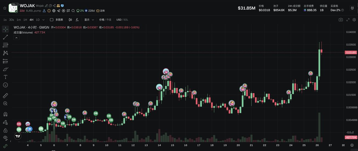 11.6早复盘 【新币】 $mec 8HxW9Z3YT1gXgQcgEynZaHsEpLXRgijGfMYCkaAypump 叙事:源自一场关于隐私币$ZEC的严肃讨论,其中Helius的CEO Mert@0xMert_在直播中戏称自己发行了“MertCash”。参与者Kain@kaiynne顺势创建了$MEC 价格:最高2.4M,当前870K 【次新币】 $wojak 8J69rbLTzWWgUJziFY8jeu5tDwEPBwUz4pKBMr5rpump 阴谋集团的新wojak,最高拉到6.2M,当前2.5M $恶俗企鹅 0xe1e93e92c0c2aff2dc4d7d4a8b250d973cad4444 从前两天的底部又翻倍,快到前高,当前3.2M 【老币异动】 $clippy 7eMJmn1bYWSQEwxAX7CyngBzGNGu1cT582asKxxRpump 0点开始从360K拉到最高3.5M,当前2.1M $1 GMvCfcZg8YvkkQmwDaAzCtHDrrEtgE74nQpQ7xNabonk 昨晚WLFI宣布将$1作为战略储备,消息出来后最高拉到49.3M,新高,当前35.2M $pfp 5TfqNKZbn9AnNtzq8bbkyhKgcPGTfNDc9wNzFrTBpump 从底部1.3M涨到最高3.7M,当前3.4M