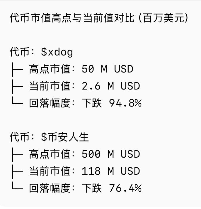 刚看了一眼,现在xdog市值从50M掉到了2.6M,币安人生118M