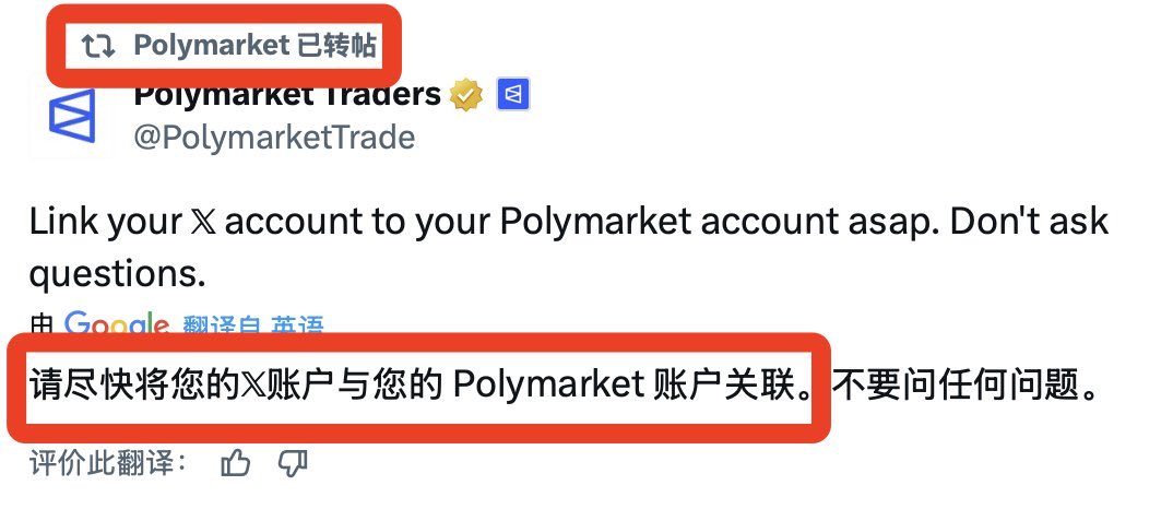 3、去 @Polymarket 的个人中心绑定下推特账号,可能会有贡献者奖励