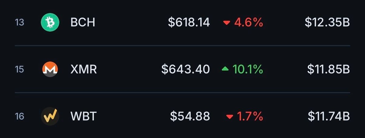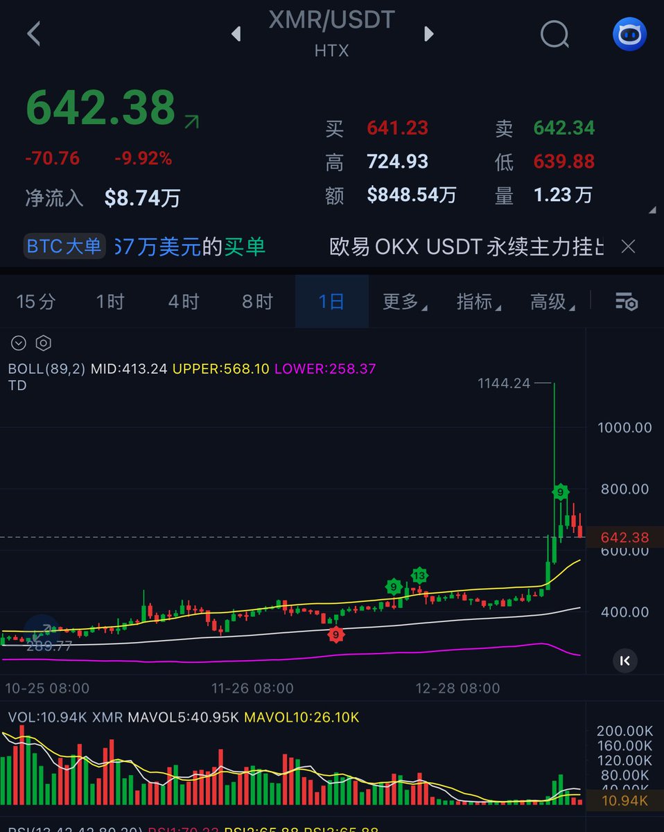 19. $XMR 从10.11开始上涨了接近200%,基本上接力 $ZEC 了,隐私匿名风又起了;