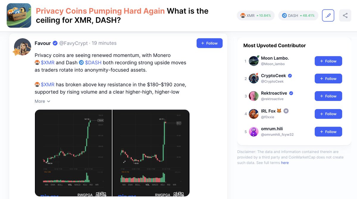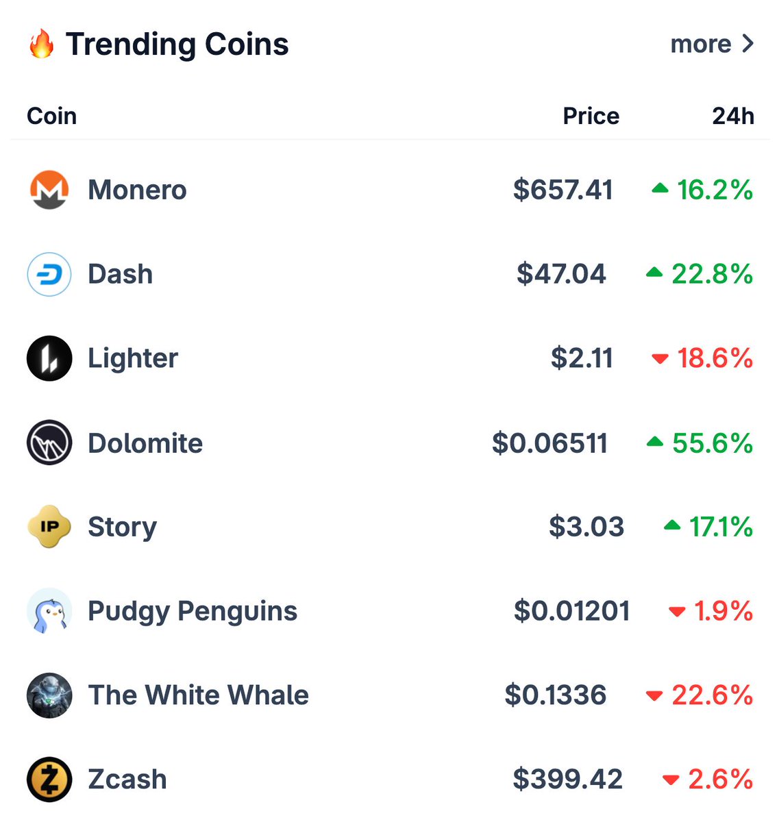 This week, $XMR (@Monero) leads the pack, followed by $LIT (@Lighter_xyz), and $DASH (@Dashpay).