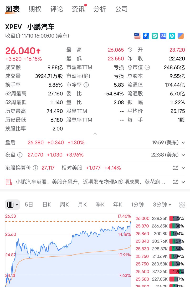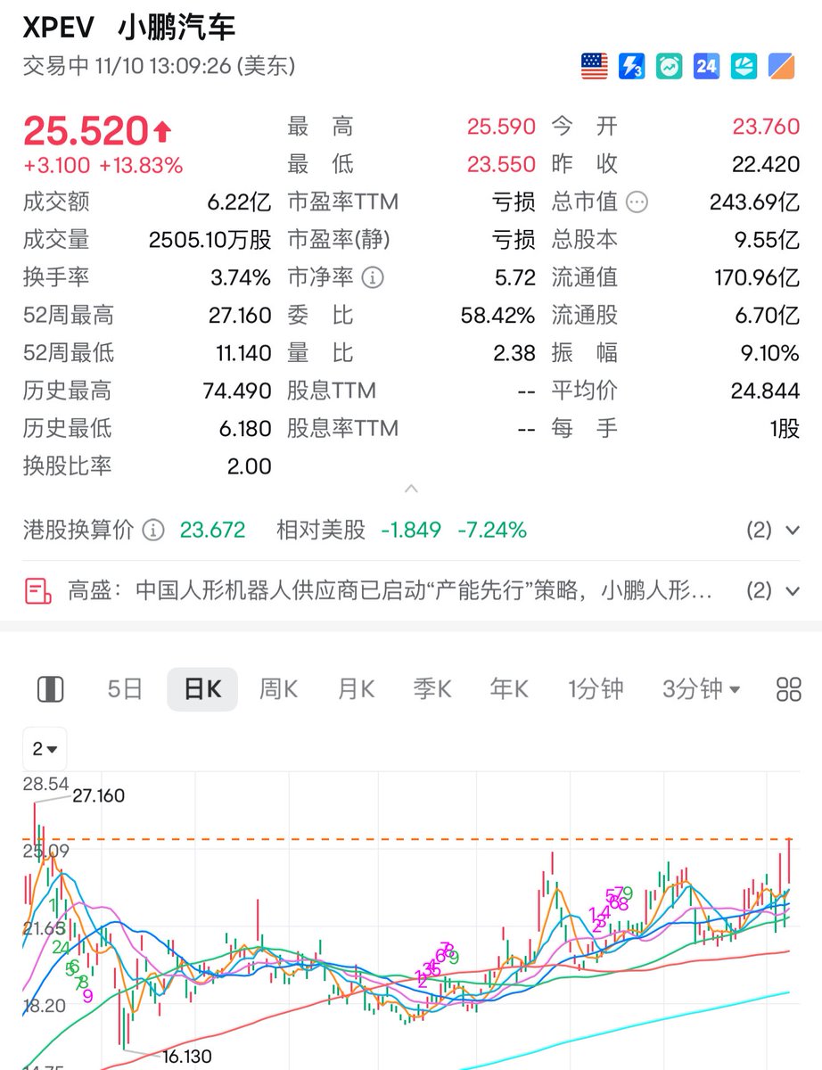 如果按照目前全球对小鹏机器人的认可度, 给 $XPEV 和特斯拉一样的人形机器人预期, 它首先可以跟擎天柱一样拥有量产能力和全球销售能力. 那么估值给个特斯拉的十分之一,1500亿美金不过分吧! 按此,小鹏股价能涨到至少150美金一股. 如果小鹏机器人再次迭代一次功能公开视频,股价会直接爆炸. 目前市面主流机器人制造商中有且仅有小鹏采用了脊椎设计可以扭胯,也就是它是目前唯一可以真实完整的还原人的动作步态形态的机器人.这种产品设计最符合我们普通人对机器人的想象.