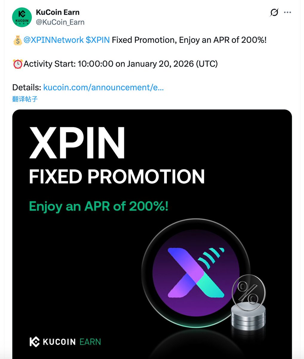 💰@XPINNetwork $XPIN Fixed Promotion, Enjoy an APR of 200%! ⏰Activity Start: 10:00:00 on January 20, 2026 (UTC) Details: