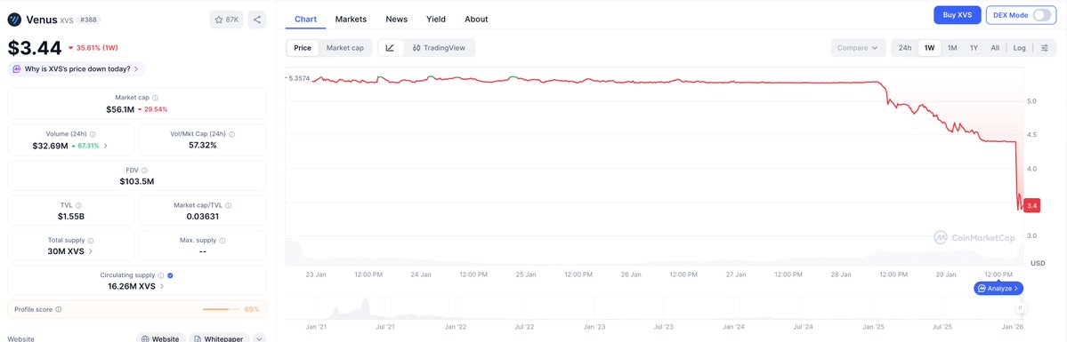XVS 一天时间闪崩 40% ($5.3→$3.1)。