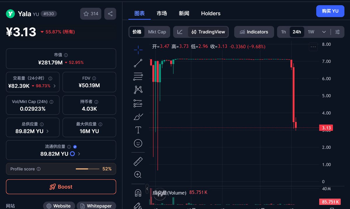 $YALA 收益性稳定币项目 24小时内暴跌 这是是实体柱子 其稳定币 YU 已经彻底脱锚了。 做市商polychian AM 和 GY 这是要彻底被放弃了。