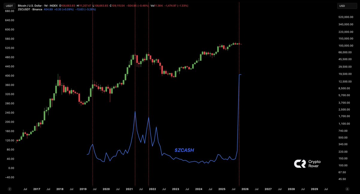 Bitcoin often peaks right after $ZCASH starts making major moves.