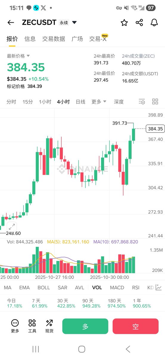 . $ZEC 最近怎么这么猛,几次插针下去都快速V反新高。