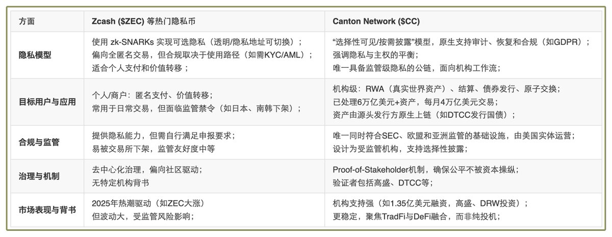 但不同的是,Canton 不是币,而是一条公链 —— 而且是目前唯一具备监管级隐私的公链。