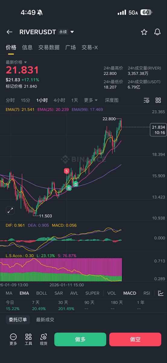 22跌11再涨回22 如果二级都能像 $River 这样有什么好眼红隔壁的。 不是流行ABC anything but crypto 但是让我彻底离开最熟悉的战场去吃别人的菜也做不到😂 风水轮流转,看着吧,资金迟早会回来的,以更狂暴的方式。