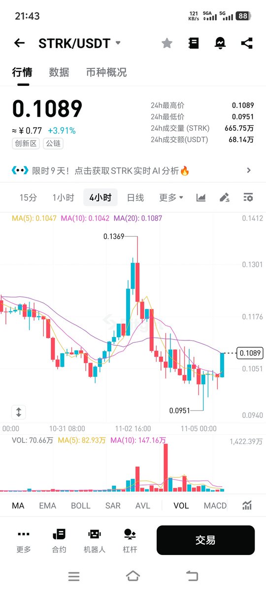 在反思这个操作,当时卖了Lpt是想买这个 $Zk 的,看着位置有点高,犹豫徘徊最后买了 $Strk ,刚回本这个吊币,还拿着呢,希望你别让人失望,哥哥!