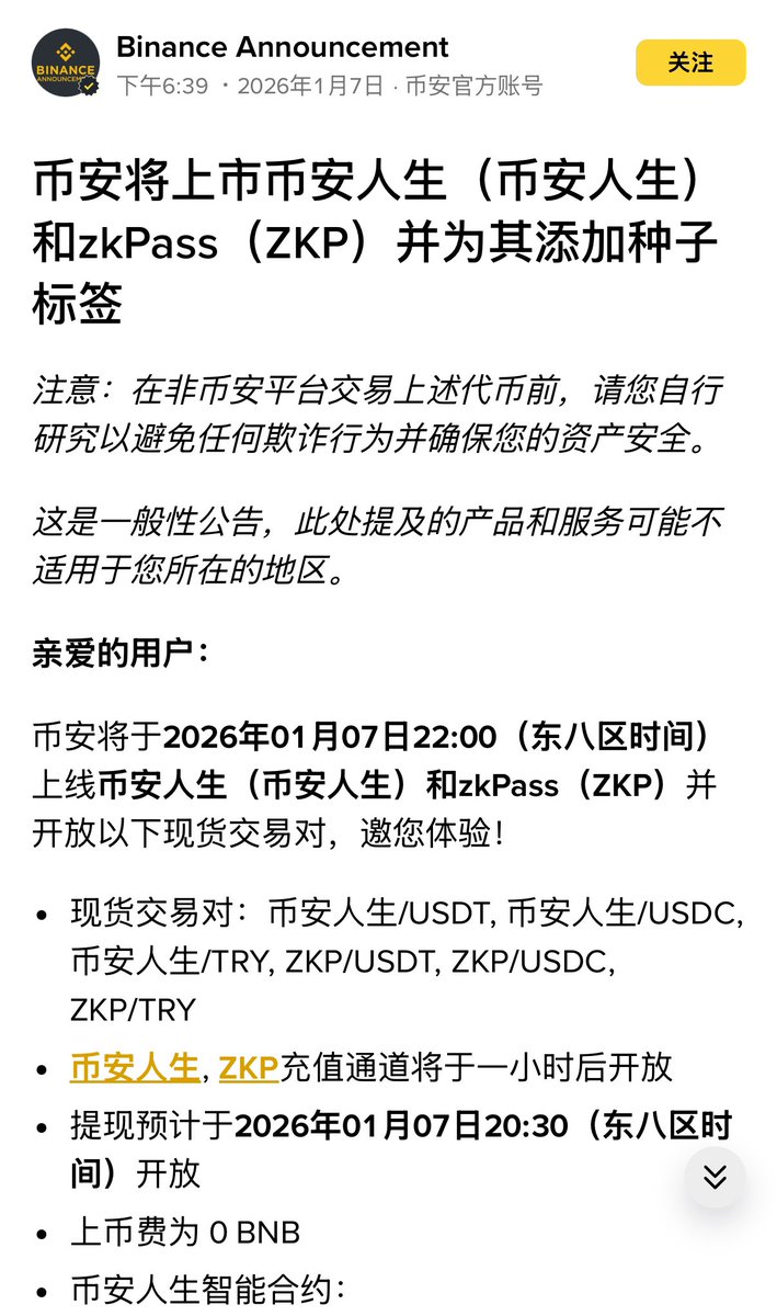 12. @binance 继续延续传统上两现货, $币安人生 搭配 $ZKP ,算是打开了中文币也可以上交易所的大门,涨跌不论,开创历史了;