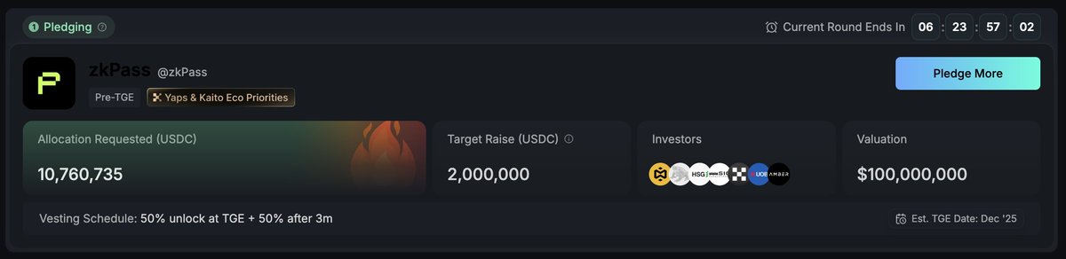 此前在Kaito 公售的 @zkPass 看来马上就要TGE 了。