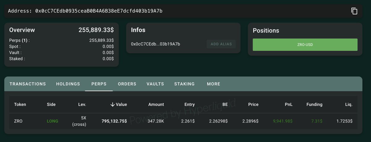 Two weeks ago, he also spent $50K to buy 33,411 $ZRO($75.5K now) spot.