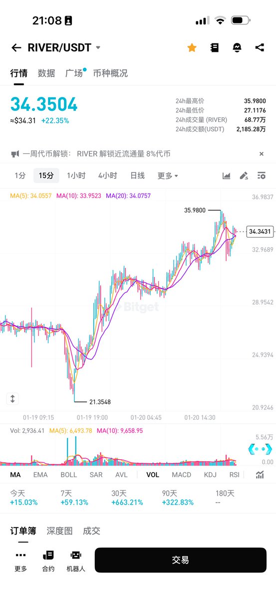 $RIVER 今日成为热点主要源于其强劲的市场表现和关键交易所上线。代币价格在短期内大幅上涨,从4美元拉升至40美元以上,今日上线HTX后涨幅达100%,两周内累计上涨840%,推动其市值进入前100。同时,项目被强调以DeFi为主业,在Pendle等平台有深度布局,增强了基本面信心。此外,24小时交易量超过28亿美元,跻身全球前五,市场关注度和流动性显著提升,共同推动了代币的热度。