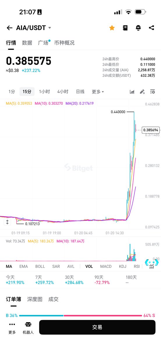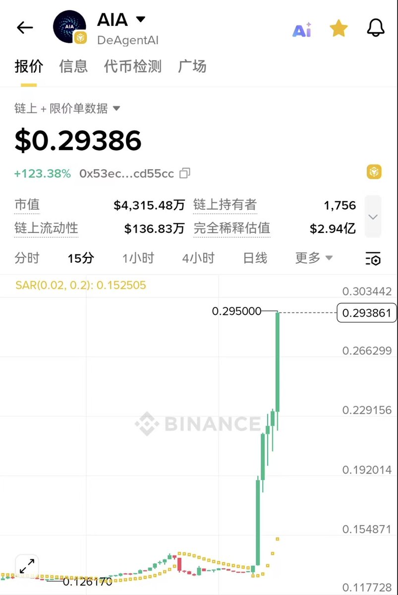 狗庄币 $AIA 又重新登陆币安合约了,暴力拉升又来了!