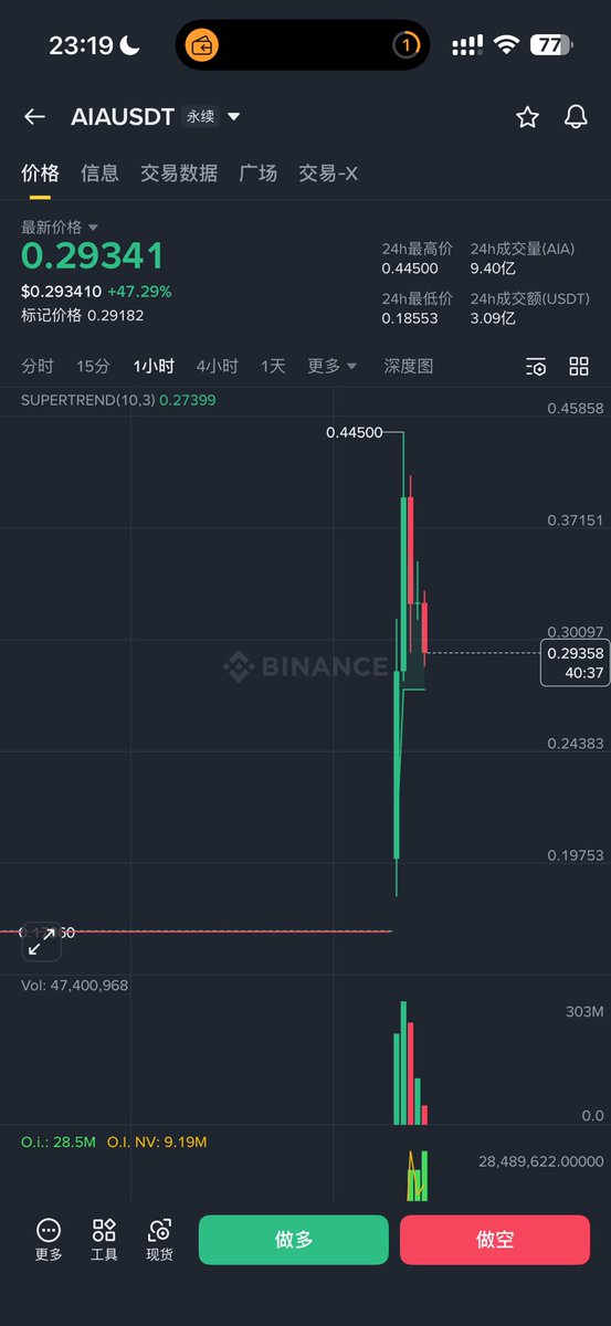 昨天$AIA重新返回了币安合约,价格一度被拉伸了3倍多,强势回归币安合约榜单涨幅榜,期待项目方表演了!
