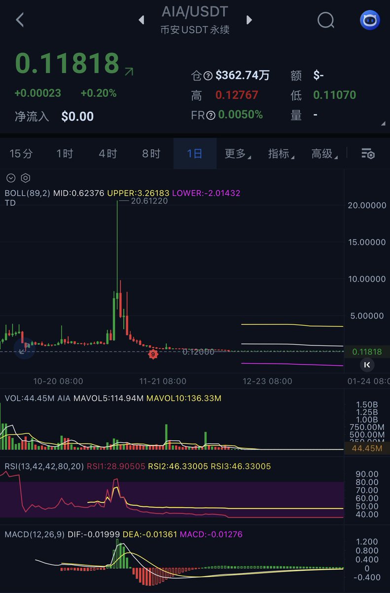 还有人说$AIA背景很强,居然能重新返回币安合约,这种情况在市场是很少见的。