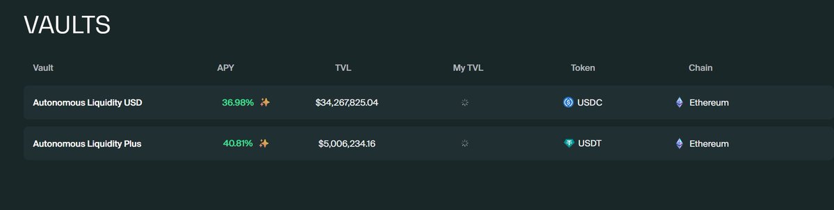 第一个保险库(Vault)上线后500万额度24小时内被抢光并且后来提高到1500万也很快满额。目前有个稳定币池的APY大概40%(8.75%基础收益 + 31%项目代币奖励)我们存款的就是这个