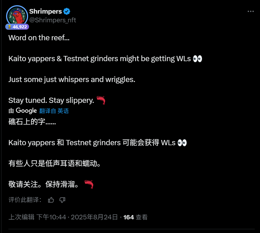 Kaito yappers 和测试网可能会获得 WLs 👀