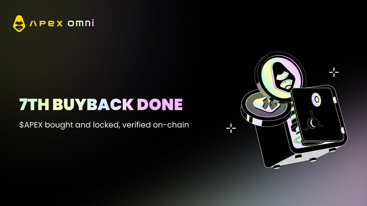 🦍 $APEX 例行回购|本周执行完成 本周,ApeX 协议已顺利完成新一轮 $APEX 回购,共计 184,000 枚 $APEX 从二级市场被持续回收,并已全部注入协议指定回购地址,统一执行 3 年锁仓。 机制不做改动,节奏保持稳定,回购不是短期刺激,而是长期结构性建设的一部分。 所有操作均已链上完成,任何人都可以公开验证: 🔗 https://t.co/OAle9Lsr2I 在衍生品赛道,真正重要的从来不是一两次市场情绪,而是协议是否具备持续创造价值、并将价值回馈给生态的能力。 持续回购并长期锁仓,本质上是在减少流通筹码、稳定预期、增强协议自身的抗周期能力,让生态在波动中依然保持韧性。 与此同时,ApeX 正在通过 ApeX Omni 不断拓展其跨链与产品边界,为交易者提供更高效、更灵活的去中心化交易体验。 如果你还没有亲自体验,可以从这里直接进入: 👉 https://t.co/W28FbpMGO4 想要第一时间了解协议进展、产品更新以及生态动态,也欢迎加入官方社区: Discord|https://t.co/5c9557cvhH Telegram|https://t.co/Av7oh1nFDF 长期主义不是一句口号,而是一次次按计划执行的结果。 ApeX,仍在按自己的节奏,稳步向前。 #ApeX #ApeXOmni @ApeXProtocolCN @OfficialApeXdex