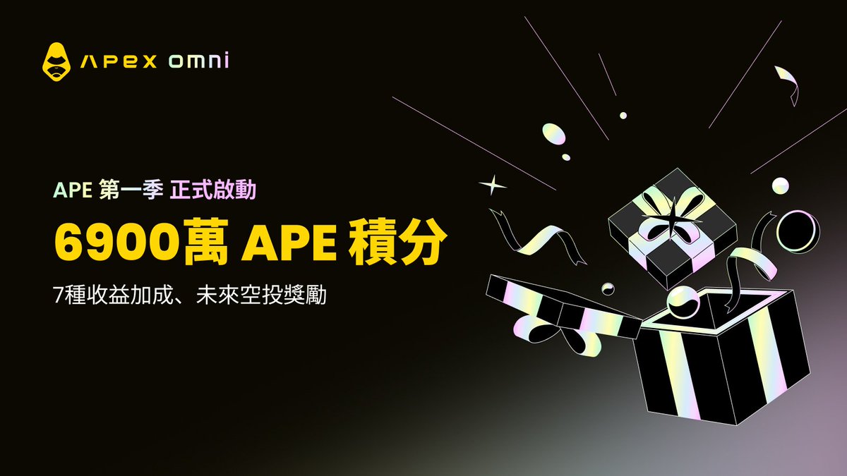 如果你错过了上一轮早期积分狂潮,那这次真的不能再躺平了。 @OfficialApeXdex 第一季积分活动,直接拿出 6900万 APE 积分砸向交易用户。 这一季从 10 月 6 日到 12 月 28 日(整整 12 周),每周三固定空投 5,750,000 APE 积分,不只是看交易量,存款、质押 $APEX 、Mantle 入金、账户余额、邀请好友、团队交易量都能给你加成。 几个关键信息: — 早鸟最香:首周交易有时间递增系数,越早上车,后面每周都在吃复利; — 老用户福利:9 月 29 日前在 Hyperliquid / Aster / EdgeX / Lighter / Paradex 等 Perp DEX 用过同一 EVM 钱包的,连钱包就能解锁预热奖励; — 社交玩家福利:一阶邀请拿好友积分的 10%,二阶再拿 5%;团队交易量做到 10B 美金,加成可以拉到 1.5×,人越多越好玩。 ApeX 把积分=未来空投筹码这件事写在明面上,现在积累的是 APE Points,未来对接的是 ApeX 全生态的权益。 市场冷的时候,最值钱的往往不是单笔收益,而是你在一个生态里的长期位置。如果你本来就玩永续、预言市场或网格,那这一季等于给你多开了一条被动挖分的赛道。 6900 万 APE 积分,总得撸一次吧。 传送门:https://t.co/NkEghHLTmf