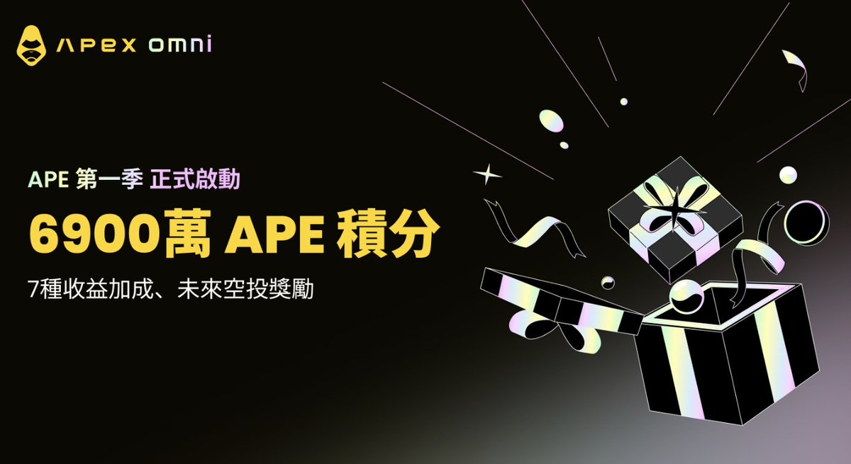 bybit孵化的 @OfficialApeXdex 6900万积分活动进行中,积分未来兑换什么现在还是未知数,会不会走Aster模式一切皆有可能。 ApeX 是一个衍生品和现货交易的非托管去中心化交易平台,于2022年推出,由Bybit旗下Davion Labs孵化,获得Dragonfly Capital、Jump Trading和Tiger Global等机构支持。平台通过ApeX Omni多链架构实现跨链流动性整合,覆盖以太坊、Arbitrum、Base、BNB Chain、Mantle、Polygon、Avalanche和Optimism等链。 平台采用意图驱动的模块化设计,结合零知识证明技术保障自托管安全性,无需KYC即可实现零Gas费交易、低滑点和高级订单类型。Apex这种架构在保持去中心化特性的同时,提供了接近中心化交易所的用户体验。 核心功能 ·多链聚合流动性:通过模块化架构整合多条链上的流动性,提升深度与交易效率。 ·去中心化衍生品:提供永续合约、杠杆交易等高杠杆产品,支持 USDT、USDC 等主流计价资产。 ·低手续费与高可用性:采用链上撮合与优化的路由算法,显著降低交易成本。 活动框架与奖池分配 Ape Season 1是ApeX推出的为期12周的积分挖矿计划,奖励生态内的交易活跃度和用户忠诚度。活动时间从10月6日至12月28日,总奖池为6,900万APE积分,每周三08:00 UTC分发575万APE。 积分赚取渠道包括四个维度: ·交易量:在ApeX永续合约、预测市场和网格机器人中的活动贡献积分,交易量越高获得积分越多。 ·Mantle存款:通过Mantle网络向ApeX Omni存款可获得APE加成。 · $APEX 质押:质押原生代币可获得额外APE积分。 ·账户余额:活动期间保持更高账户余额可提升APE收益。 加成与奖励机制 早期参与者奖励: 预启动奖励:对9月29日至10月6日期间活跃交易者提供一次性奖励。 首轮加成:10月6日至12日开始交易的用户获得加成系数,该系数在赛季中累积以获得更高回报。 DEX先锋加成:为在2025年9月29日前在Hyperliquid、Aster、EdgeX、Lighter、Paradex等永续DEX有交易历史的EVM地址提供专属奖励,需关联钱包并验证历史记录。 团队加成体系: 邀请者可获得一级被邀请者APE积分的10%和二级被邀请者的5%(不含推荐/团队积分)。 团队交易量倍数基于永续和预测市场周交易量(不含网格机器人/金库),等级从5亿美元(1.05x)至100亿美元(1.50x),每周更新适用于下一周。 邀请链接:https://t.co/sbD3yrB1q8 参与规则与限制 资格要求: ·仅计算活动期间产生正交易费用的交易。 ·ApeX做市商计划参与者不符合APE加成资格,负费率被移除。 ·ApeX VIP用户需遵守费率调整规则。 合规与反作弊: ·每位用户限一个账户,禁止多账户、机器人和欺诈行为。 ·刷量交易、市场操纵或利用漏洞将导致取消资格。 ·奖励通过链上验证,ApeX保留修改/暂停/取消活动的权利和最终解释权。 当别的项目还在画饼的时候,ApeX 直接拿出 6,900万 积分真金白银发钱。只要你会交易,就能在 ApeX 实现“左手刷收益,右手挖空投”。当前正是 Season 1 开局最好的上车窗口,12周后回过头看,今天的每一笔手续费都可能是未来的回报。