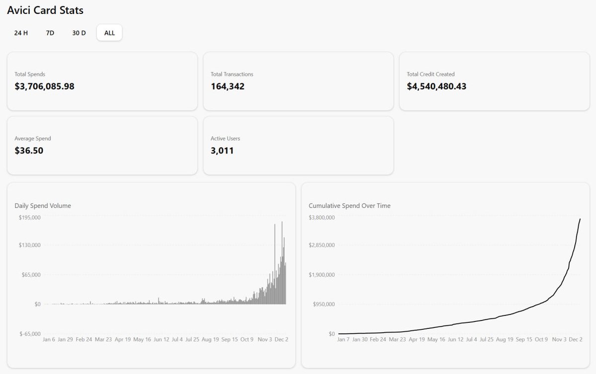 Numbers keep ramping for $avici Weekly Spend +36% Avg ticket +34% Users +6% Credit created +13% That’s not maybe growth later it is undeniable growth already happening/continuing. At less than 1x throughput you are once again buying growth for free. Buy ownership growth
