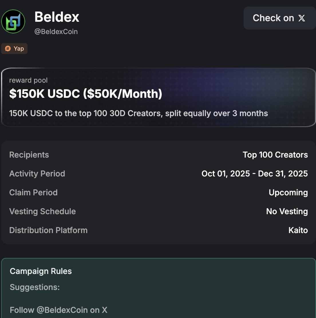今天是 @BeldexCoin 上 @KaitoAI 都最后一天