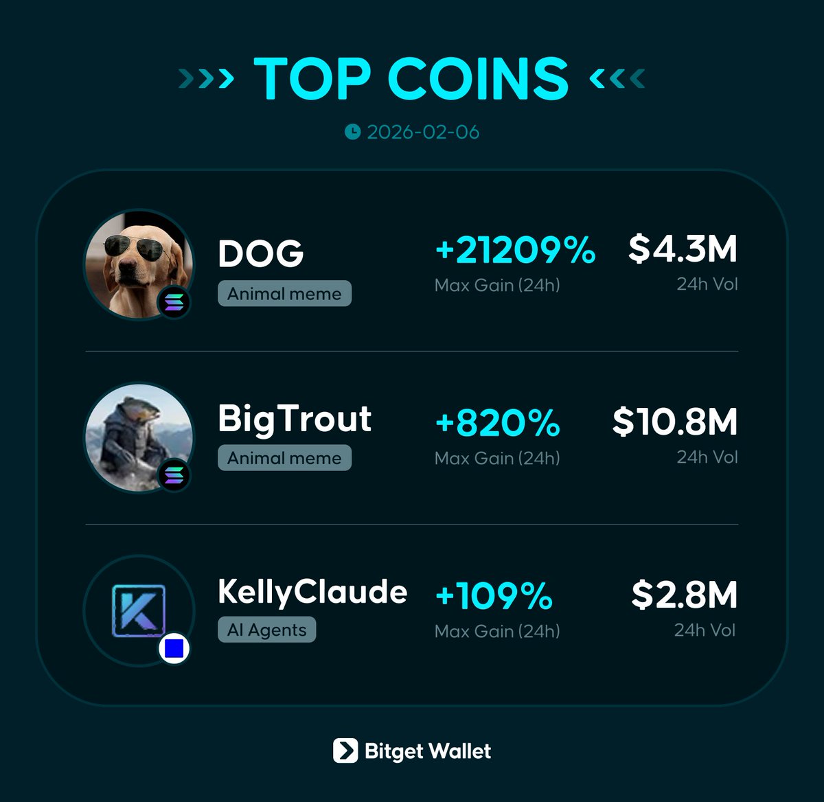 Markets are dipping, but we'll still deliver top picks for those in the trenches: 🐶 Memes: $DOG 🐟 Memes: $BigTrout 🦞 Memes: $KellyClaude Markets outlook: $BTC breaks below $62,000, altcoins pumped the wrong way see a broad decline while $HYPE swims against the tide. We're seeing a surge in animal memes on solana such as $BigTrout & $DOG with active communities & trading. AI agents on base are reviving, with multiple clanker tokens like $KellyClaude staging a strong second rally.