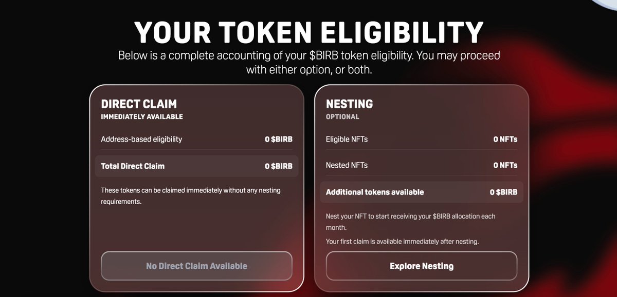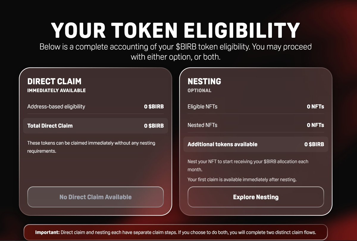 The $birb claim and Nesting 2.0 is now live. This is the ONLY official claim site, do not trust any other links and stay safe.