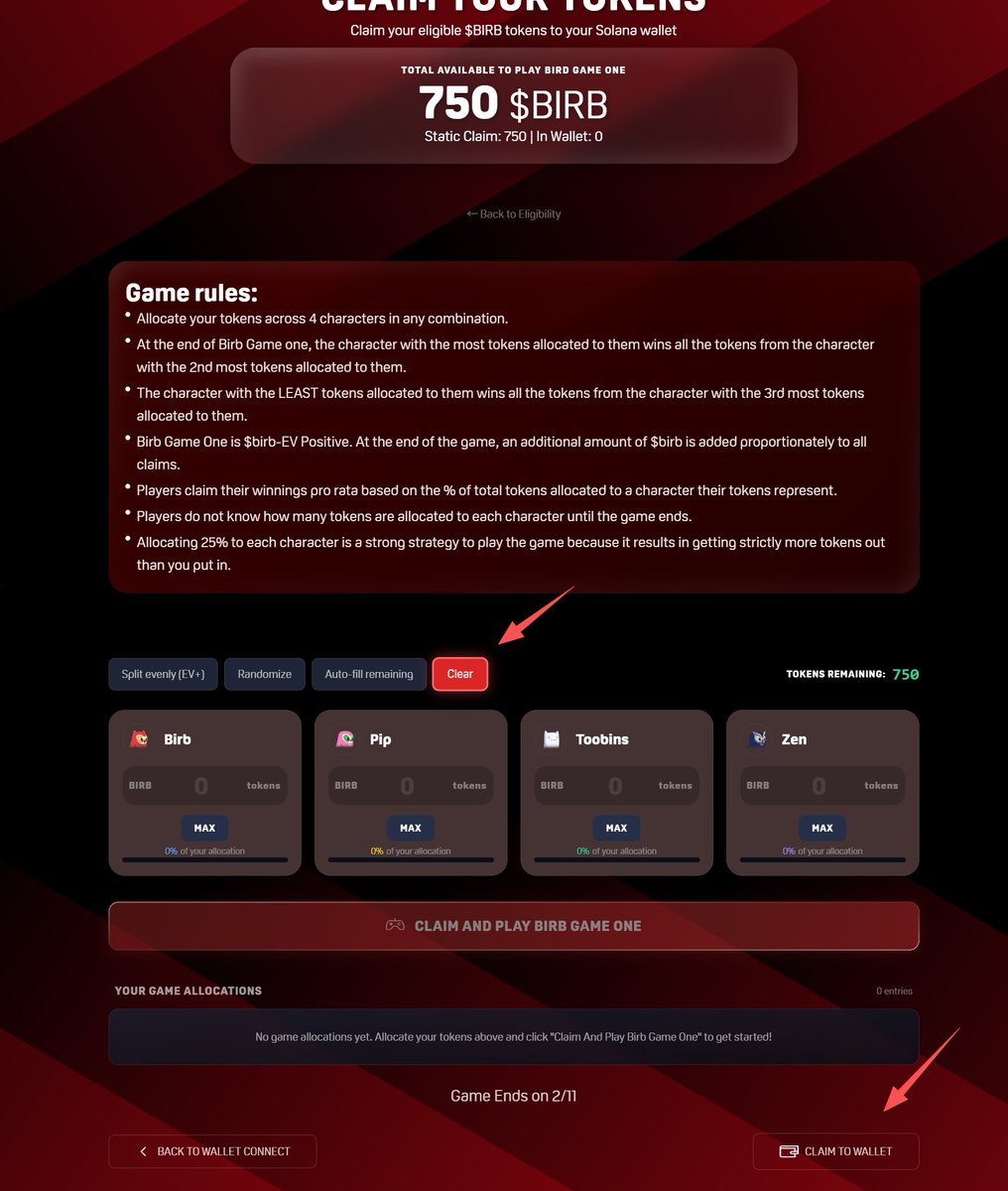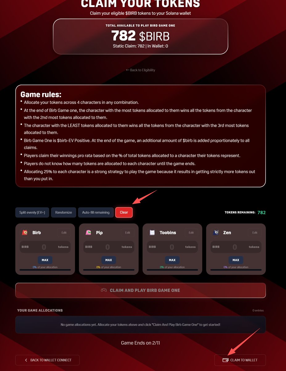 月鸟 Moonbirds 空投领取教程 感谢朋友们给我发的各种领取办法,尝试很多种之后终于领取成功了,如果你也还没领成功可以试试。 我跟很多朋友不一样的点在于我的空投主要在EVM钱包上,而不是SOL钱包,所以我必须要链两个地址,如果你也一样,可以参考。 具体方法👇👇👇 先把你的SOL地址导入到Jupiter插件钱包,用Jupiter钱包去连接空投网站 https://t.co/QEskBQmOZp 之后再连接EVM钱包,这里我用的是小狐狸钱包 后续就是正常操作了,在最后领取那里,小游戏分配那里选择“Clear”,然后直接点击最下面的“Clam To Wallet” Jupiter弹出签名,确认 这次直接就成功了,750个 $birb 马上到账 注: 另外说下为啥我的空投数量比一般人稍多的猜测。我也没有月鸟NFT,我EVM钱包就两个SBT 个人猜测有两种可能, 一是KAITO这个SBT空投权重较高,有这个SBT直接就700多代币空投; 二是可能我之前写SEEKER日报的时候,经常会带上月鸟SBT的教程,增加了空投权重,可能被直接记录在KAITO这枚SBT里面了 再次感谢朋友们提供的方法,另外听说SOL钱包使用Phantom也可以,不过我不行,已签名马上失败。