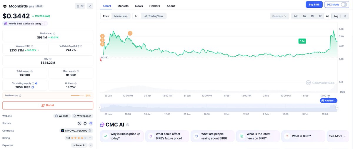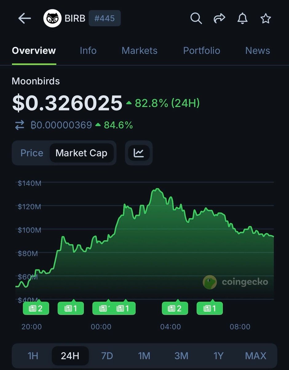 INSIGHT: $BIRB is trending today, up 82.8% since its TGE, peaking at $134M market cap.