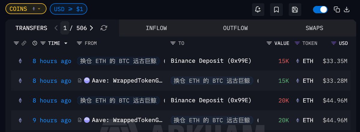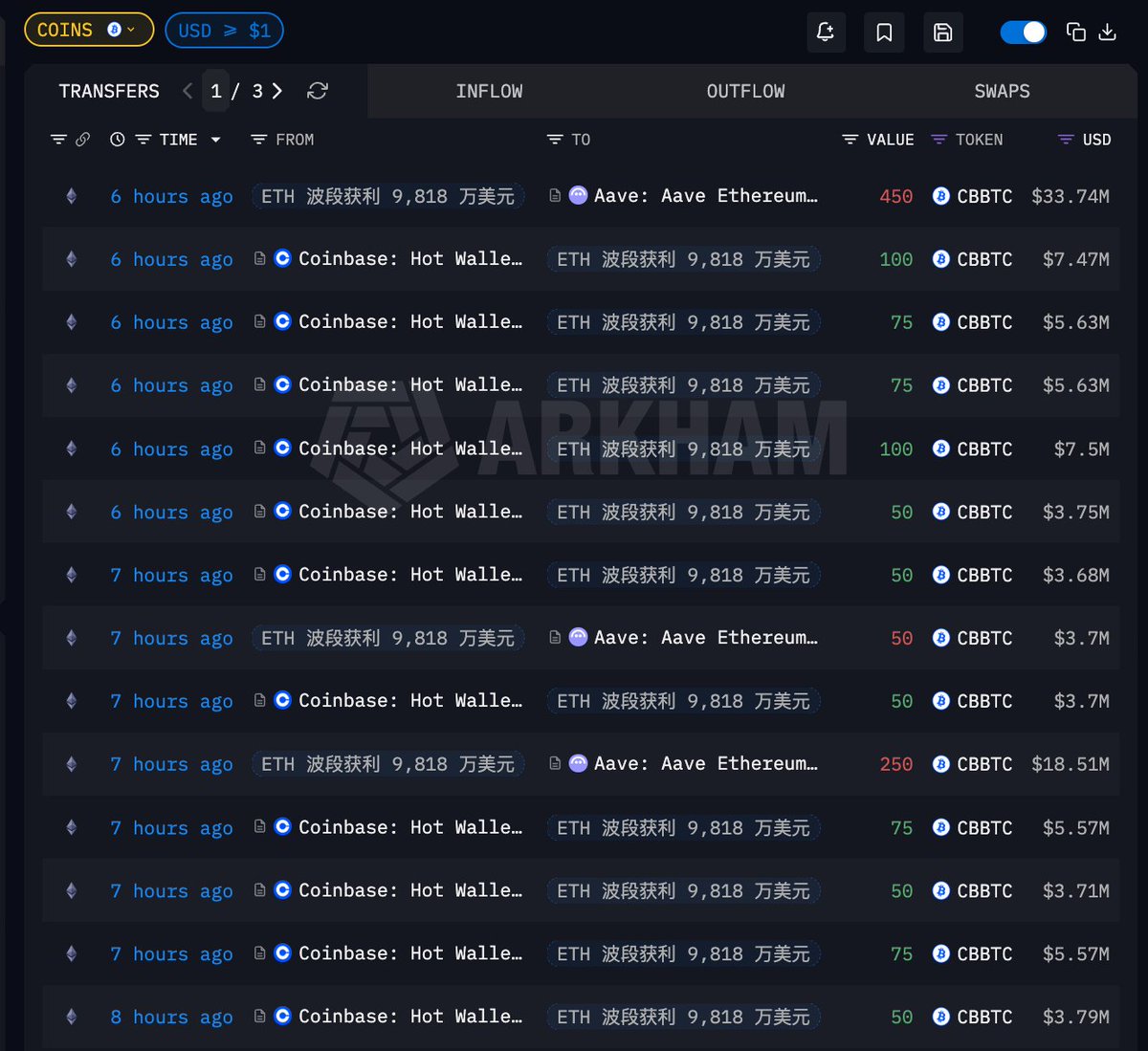 「ETH 波段获利 9922 万美元的聪明钱」过去 8 小时从 #Coinbase 提出 750 枚 $cbBTC ,总价值 5599.9 万美元,平均提出价格 $74665.8