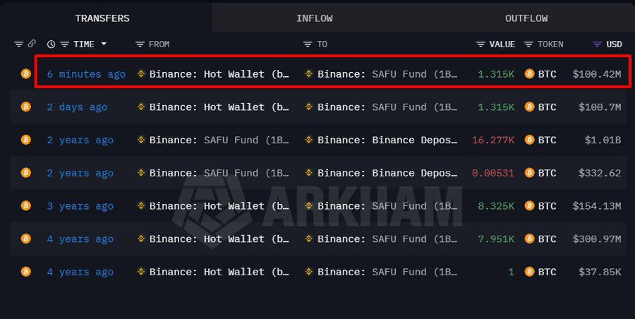 据链上数据Onchain Lens 信息, 币安的 SAFU 基金进一步购买了 1315 $BTC ,价值 1.0042 亿美元。