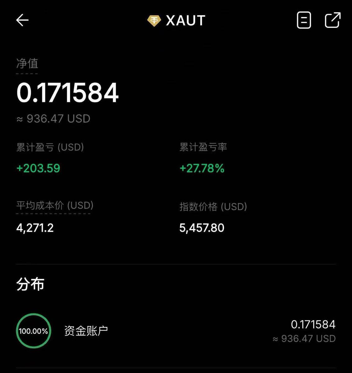 前两天看了一下杰尼的U卡,刷卡返现的 $XAU 都盈利30%了。