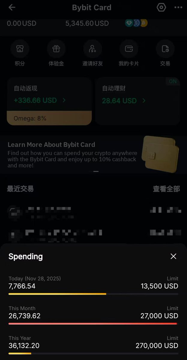 不过一看记录,发现最近怎么没有 $XAU 返现,再去U卡界面一看, 原来Bybit @Bybit_ZH 把返现币种中的 $XAU 删掉了。