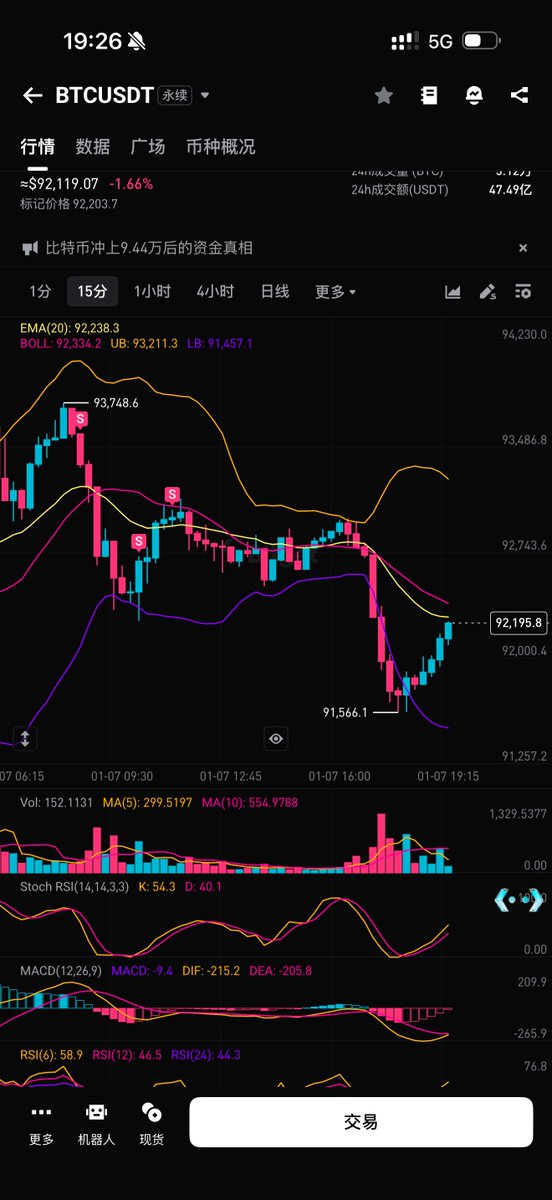 1. 首先,比特币这波87k开启的拉升,最高摸了94k之上,刚好比上个月的高点高一丢丢。这表示新高流动性已经初步捕捉完毕,1-4小时级别的行情进入回调周期。夜里短线下探了91200并迅速反弹到93800,回抽了高位箱体——这也预示着进一步回调的意图。于是我上午在策略群里提示了大家,93200止盈多单,等待更好的位置再接回。