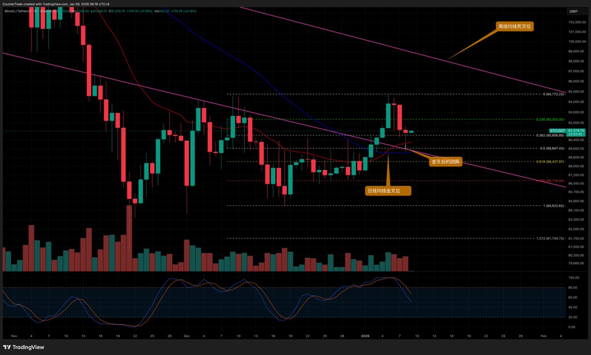 💡总结一下的话,就是短线回调到9w左右,然后拉到9w9,再看跌到6w9。