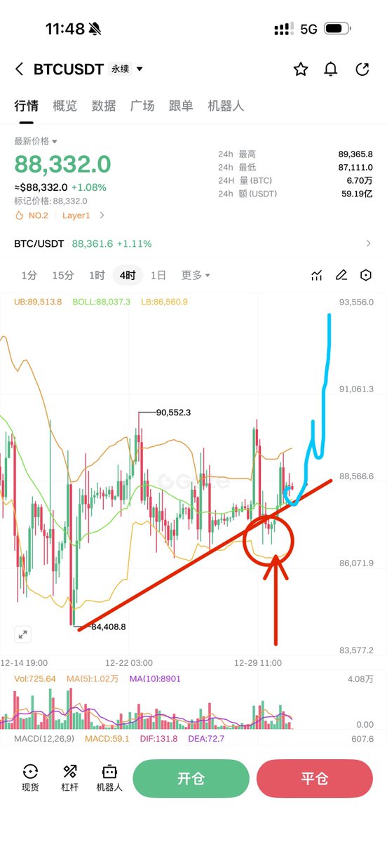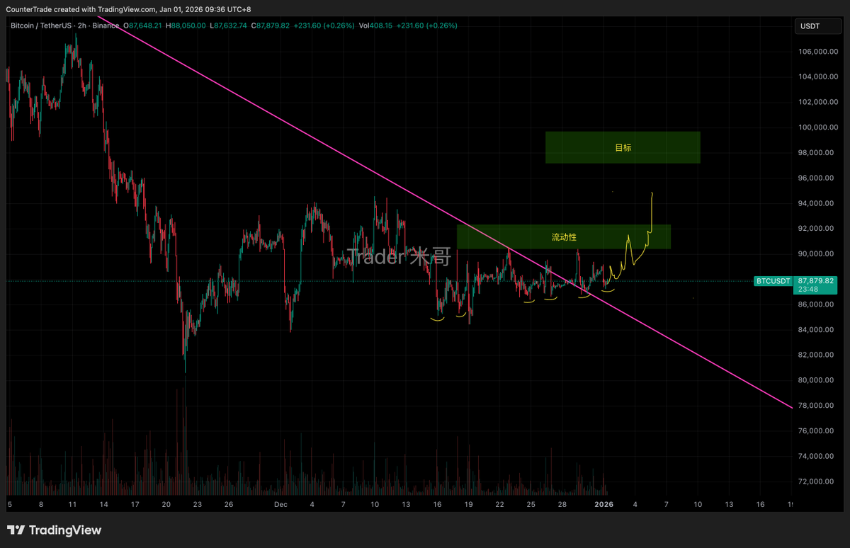 98k到位后,就要注意风险了,大概率春节期间我们会看到65-70k的比特币。行情会非常炸裂。