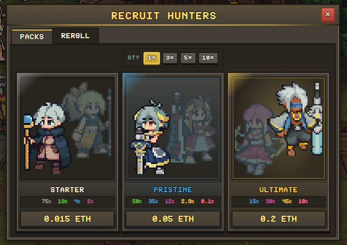 1回0.2ETHの一番高いガチャに2.2ETHほど突っ込んでようやく最上級キャラGET! @playhuntertales