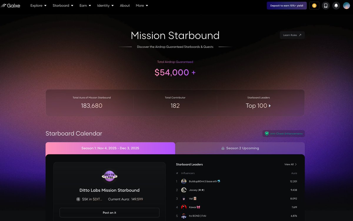 Ditto @dittocoin 的Galxe Starboard 已上线