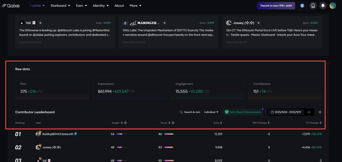 3、Starboard实时追踪:一篇高质量教程可能比简单转推价值高 10 倍。全球排行榜会根据地域和领域排名用户,顶级贡献者可获额外曝光。