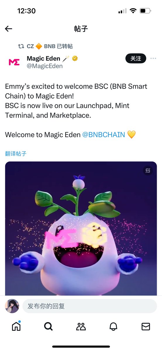 CZ 转推了 ME 的吉祥物 $EMMY 7H6R3diPfy6cGmBb15dj9RRYE7nULMRaGZauehtWpump