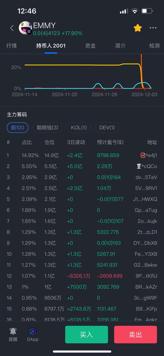 我还是更好看这个小市值的,龙头dev有5.6%的筹码,放在榜一,砸下来掏池子。 $EMMY 7H6R3diPfy6cGmBb15dj9RRYE7nULMRaGZauehtWpump 搜了下推特,老外也是在建设小市值、筹码分布合理的