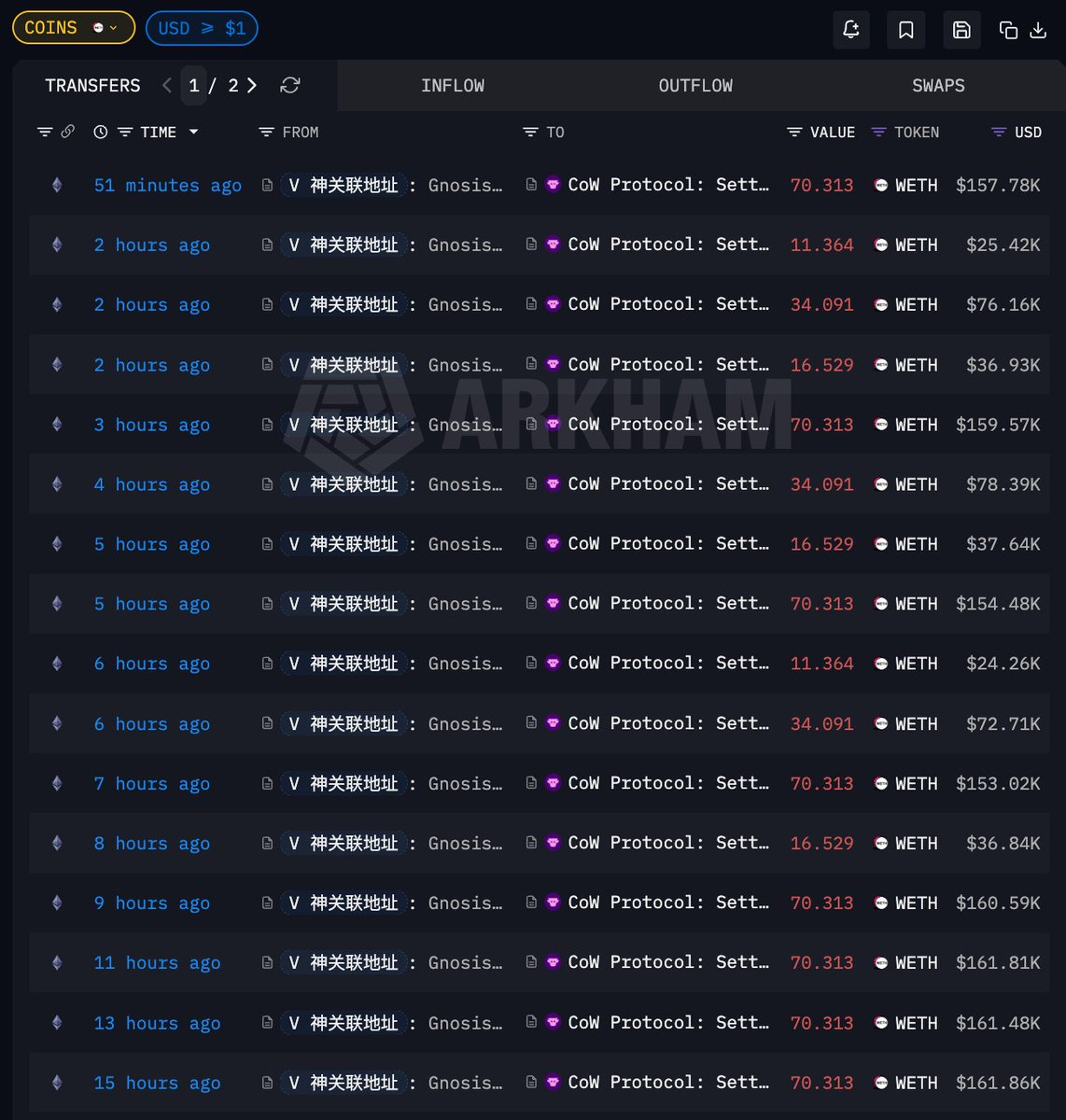 2. $ETH 一边喊着可以买现货了,一边 @Jackyi_ld 在大额转账到交易所,不会真以为币本位开多吧;