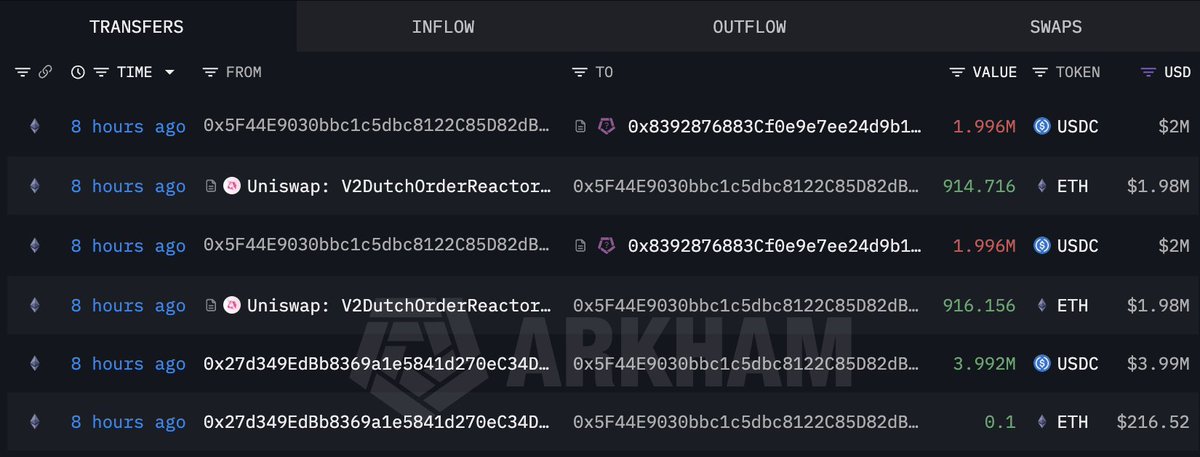 爆仓 2.3 亿美元的 1011 巨鲸过去 8 小时疑似抛售 35000 $ETH —— 至此他在 01.26-01.27 建仓的 14.8 万枚 ETH 已疑似清仓,亏损 7641 万美元