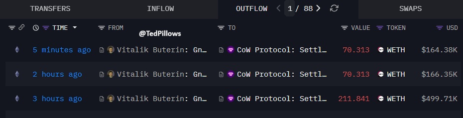 虽然但是,V 神计划用于捐赠的 $ETH 仍在出售中👀