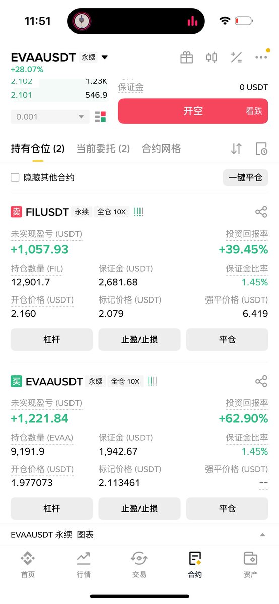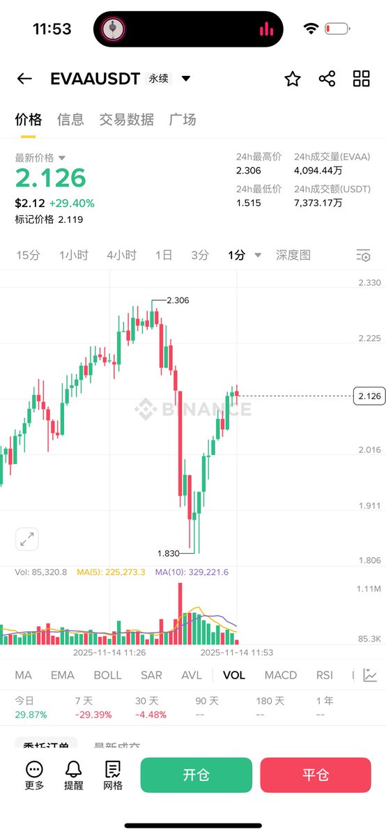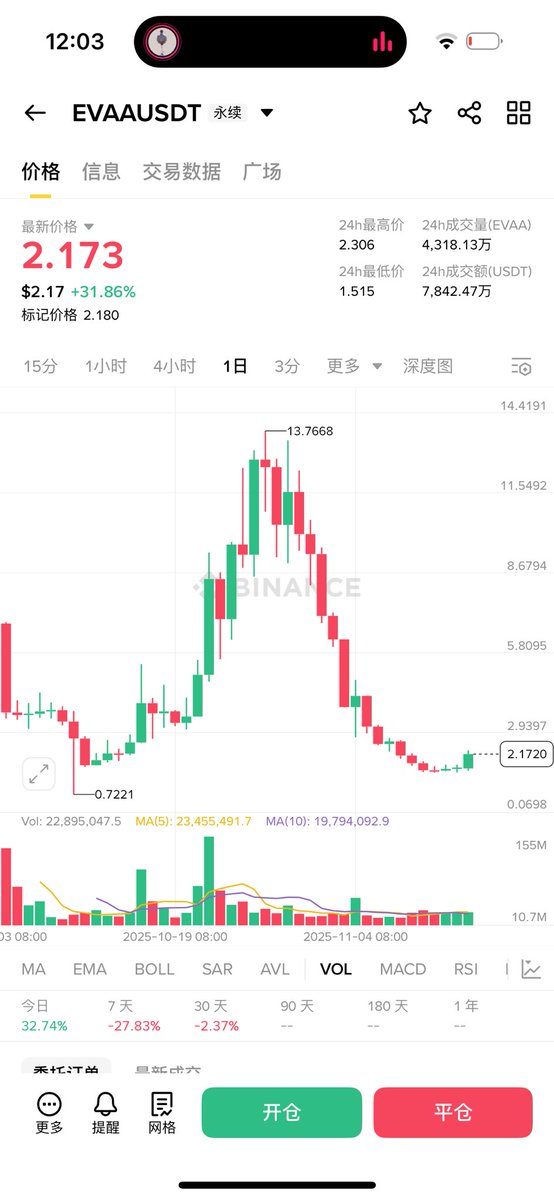 还没领EVAA的空投 我这两天在外面 错过合约开盘低开 也错过昨天高点了 这两天的BNB行情太疯 不该出门爬山的 BSC且同时alpha上合约的必须重点关注下!