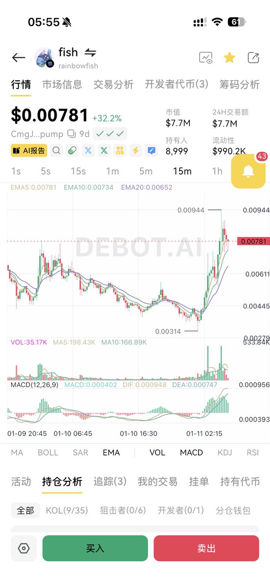 solana链上抄底的 $SOL 和 $Fish 都起飞, $SOL 翻倍多一点, $Fish 高点接近翻倍